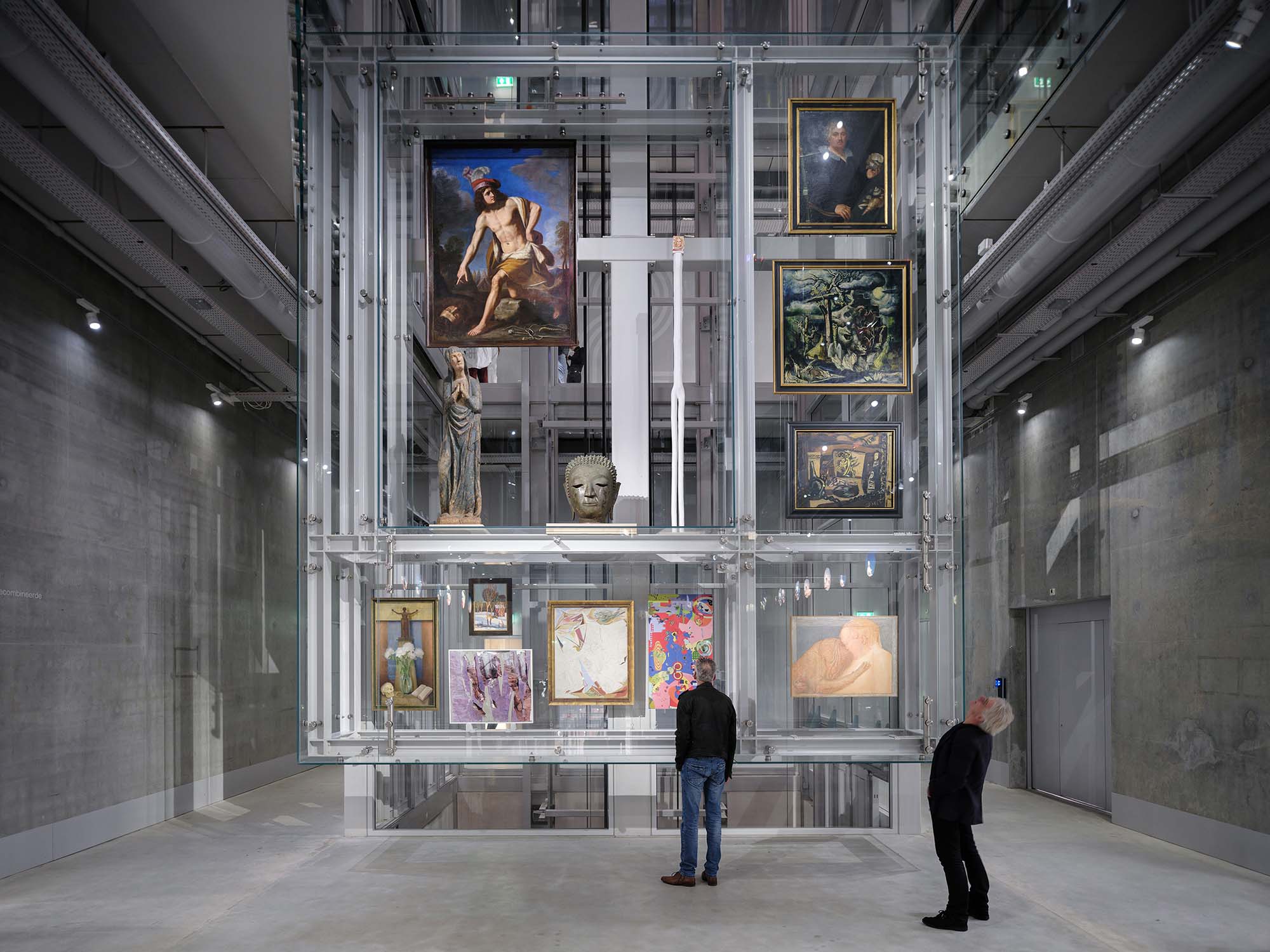 Dans la plupart des musées, il est d’usage de cacher son dépôt dans les sous-sols de son établissement. Au musée Boijmans Van Beuningen de Rotterdam, le Storage est au cœur de toute l’attention, puisqu’il réside au sein d’un bâtiment monumental en forme de vase dont les parois sont entièrement miroitantes.
