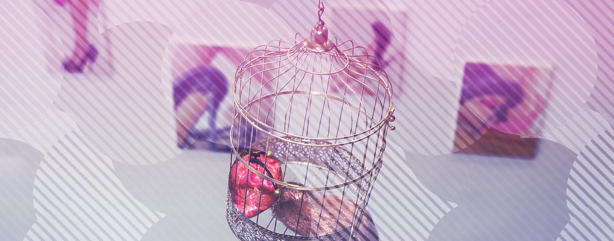 Ainsi, franchir le seuil de la galerie, c’est comme passer à travers un miroir magique: la boutique de chaussures s’avère être un espace artistique qui se joue des codes. D’ailleurs, le milieu de la pièce accueille une référence à un conte, celui des frères Grimm: Rapunzel (Raiponce). En déployant sa longue tresse du sommet de la tour dont elle est prisonnière, cette princesse permet à son amant de la rejoindre, l’exhortant à revenir la sauver. Mais ici, la tresse provient d’une cage dorée grande ouverte, suspendue au plafond. Nombreux sont les contes qui, dans un souci moral, ont attribué aux femmes des rôles passifs et captifs. De nos jours, tout ceci est incontestablement désuet, les femmes peuvent rejeter ou s’approprier les codes qui les emprisonnent, s’émanciper avec qui elles le souhaitent, prince ou pas prince, seules, etc. En clair, elles ne devraient plus avoir à se soucier du qu’en dira-t-on.