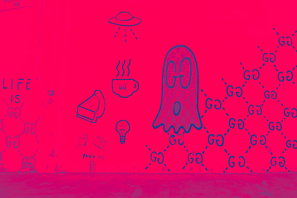 Entre l’ancien snowboarder olympique Trevor « Trouble » Andrew devenu street-artiste et la maison Gucci il y a une véritable histoire d’amour. Aficionado de l’univers Gucci dès son plus jeune âge, il s’achète un garde-temps de la marque avec son premier salaire. Alors qu’il vit à New York en 2013, il se confectionne un costume de fantôme avec ses draps Gucci par faute de temps, le soir d’Halloween. Affublé de ce déguisement pour le moins inattendu, il ne manque pas de se faire remarquer. Cette anecdote lui vaut le surnom de GucciGhost, une aubaine, car les initiales de ce sobriquet sont également celles de la maison de couture. Baignant dans l’univers du street art, séduisant un bon nombre de snowborders, Trevor Andrew s’essaie au graffiti dans les rues de Brooklyn. Il taguera partout le symbole du fantôme Gucci qui le rendra célèbre et interpellera par la suite le directeur artistique de Gucci, Alessandro Michele. En 2015, le street-artiste peint dans son studio lorsque qu’il reçoit un coup de téléphone du créateur, lui proposant une collaboration avec la maison. En 2016, naît la collection GucciGhost, une ligne d’accessoires et de vêtements ayant pour but de rajeunir la marque. Le succès est au rendez-vous car les courants comme le hip hop et le R’n’B s’étaient déjà emparés des initiales GG depuis le début des années 2000, l’affichant sans modération dans leur clips. Cette fascination pour le luxe que l’on pourrait trouver contradictoire s’est largement répandue dans la rue, si l’on observe le nombre croissant de jeunes portant des contrefaçons. Une bonne reconversion pour un ancien sportif, qui continue à marquer une multitude de toiles et d’objets du monogramme iconique, allant des toilettes chimiques au chapeau.